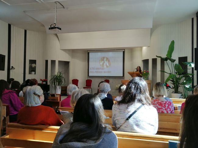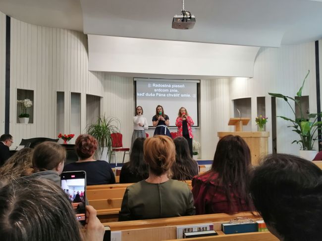 Modlitebňa sa do oficiálneho začiatku o 9.30 zaplnila samými ženami – až na dvoch mužov, jedného klaviristu a jedného zvukára. Obidvom bratom ďakujeme, že nám poslúžili :-).